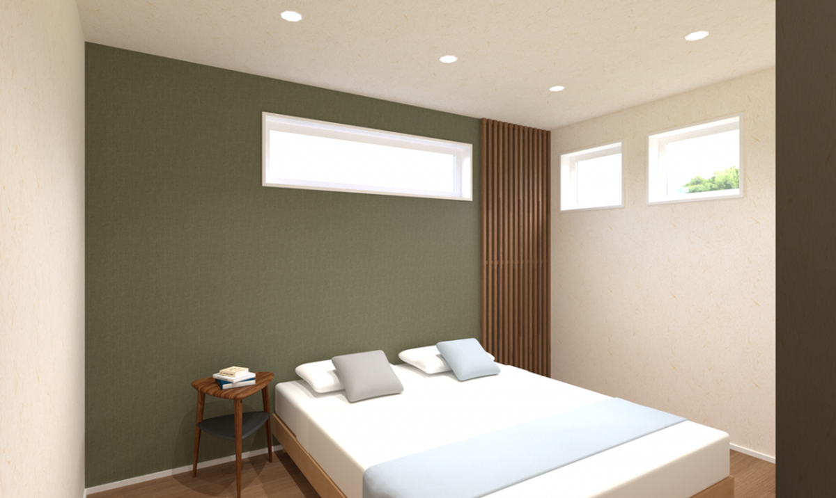 和紙のような質感のクロスと、グリーンのアクセントクロスがやさしく調和し、心を落ち着かせてくれます。